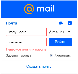 Раз уж вы попали на эту статью, значит, увидели неприятное окошко с надписью «Неверное имя или пароль» при входе в свой ящик на mail.ru.