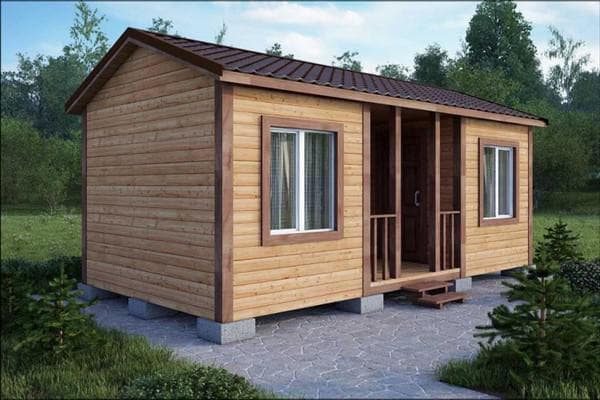 Бытовки часто выполняют из дерева. Поэтому рассмотрим строительство на примере такой конструкции. Деревянное сооружение имеет небольшой вес, поэтому капитальный фундамент под него не нужен. В качестве такового подойдут бетонные блоки, которые устанавливают на одном уровне.