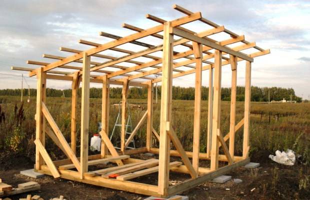 Каркас бытовки с заготовкой под односкатную крышу — простейший вариант