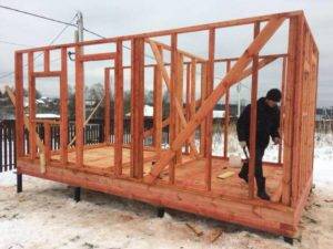 Остановимся подробней на возведении деревянной каркасной вариации. По сути, это самое распространенное строение при самостоятельном исполнении домика под названием «бытовка».