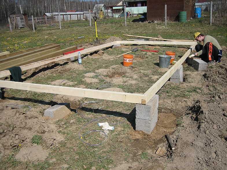 4. Создание фундамента является началом любого строительства. Обычно применяют столбчатый фундамент из шлакоблока. Данную конструкцию затем легко будет разбирать.