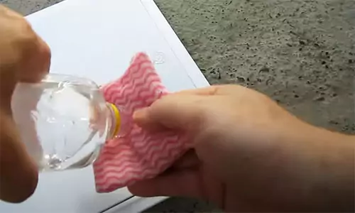 ![]() | Далее поверхность протирается мягкой влажной ветошью для удаления пыли. Но главное – это качественное обезжиривание. Его можно произвести при помощи растворителя или ацетона. |