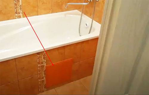 ![]() | При такой расцветке кафельной плитки в ванной закрывать ревизионное отверстие белым лючком совершенно не хочется. Это значит, что пластик придётся окрашивать. |