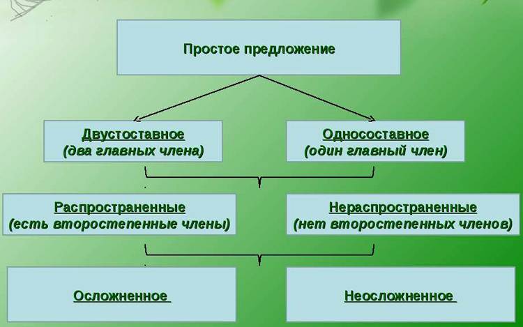 - Односоставность: простое предложение может состоять только из одного основного члена предложения – подлежащего и сказуемого.