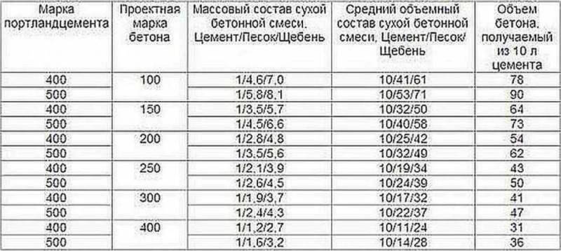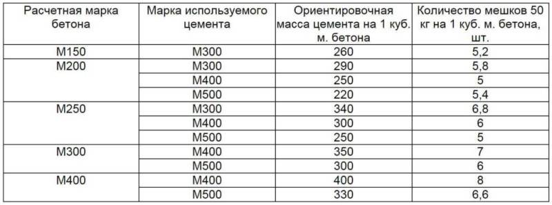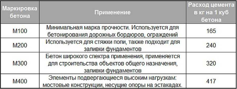 По таблице легко определить, сколько цемента надо на кубометр бетона