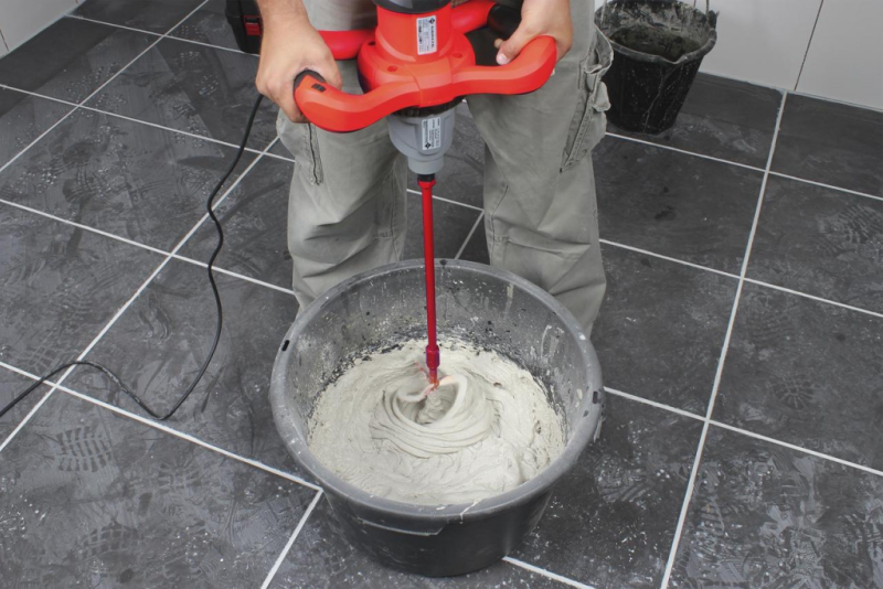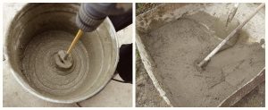 Для замешивания раствора можно использовать ручной миксер (подойдёт для малых объемов и площадей), или можем использовать бетоносмеситель для — больших, средних и малых площадей.