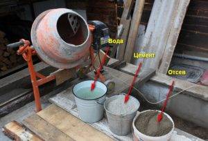 Бетономешалка | Замешивание бетона из основных компонентов. |