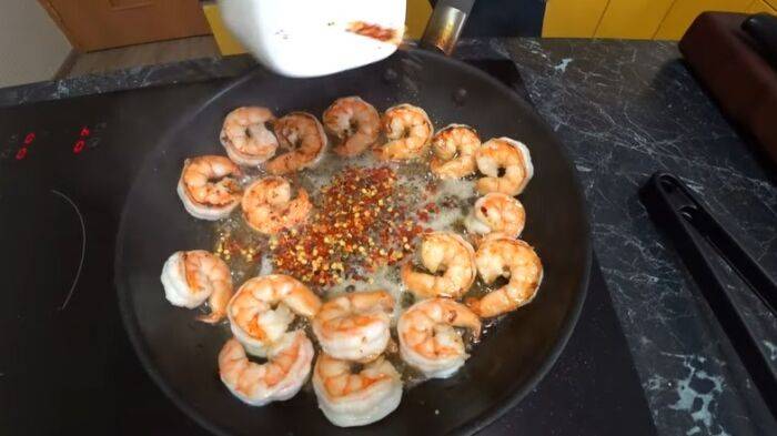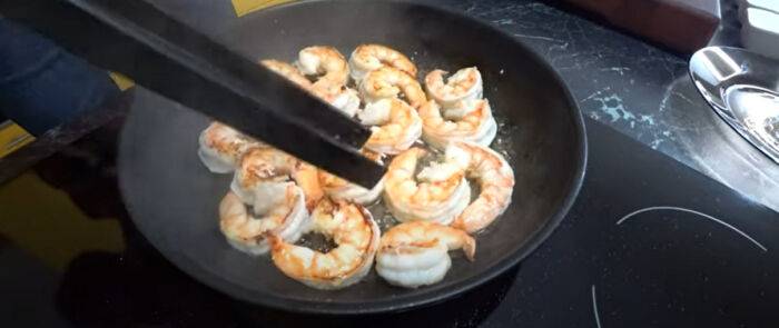 Жарить сырые креветки следует по тому же принципу: как только покраснели, можно сервировать.