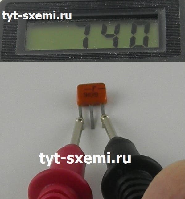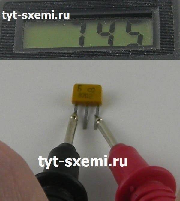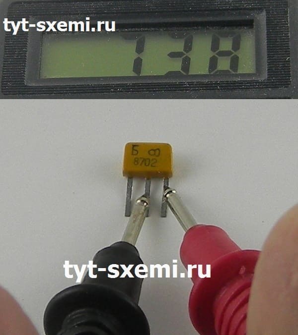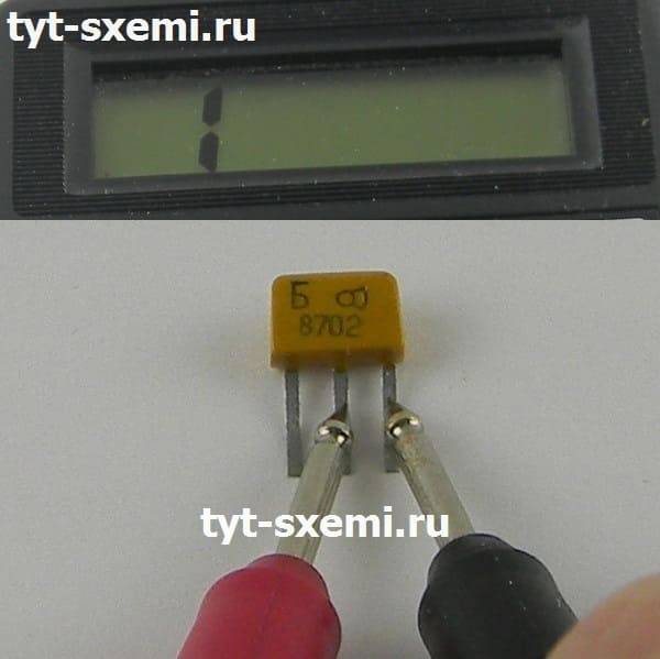 Если поставить щупы наоборот, черный на базу, а красный на коллектор, то мультиметр покажет зашкаливающее значение (1).