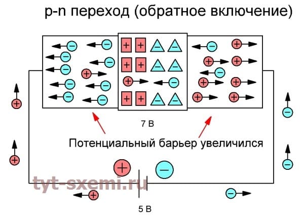- Бесконечно большое сопротивление при подключении источника постоянного тока в обратном направлении.