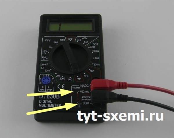 Для простой проверки транзисторов подойдет любой мультиметр с функцией диодной позвонки. В этой статье мультиметр DT830B. Подключаем черный щуп в «COM», а красный щуп в «VΩmA». Подключать щупы нужно согласно цветам, иначе будет путаница при измерениях.