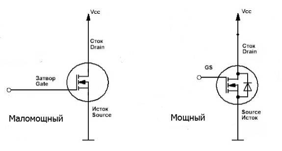 Англоязычное обозначение таких транзисторов – MOSFET, что означает «управляемый полем металло-оксидный полупроводниковый транзистор». В отечественной литературе эти приборы часто называют МДП или МОП транзисторами. В зависимости от технологии изготовления такие транзисторы могут быть n- или p-канальными.