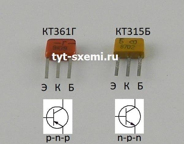 У них одинаковый корпус, характеристики и цоколёвка (расположение выводов). Такие транзисторы, как КТ361 и КТ315 называют комплементарными. Они могут работать в одной схеме усиливая сигналы разной полярности поочередно.