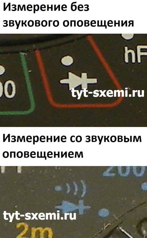 В зависимости от мультиметра режим диодной прозвонки может быть со звуковым оповещением или без него.