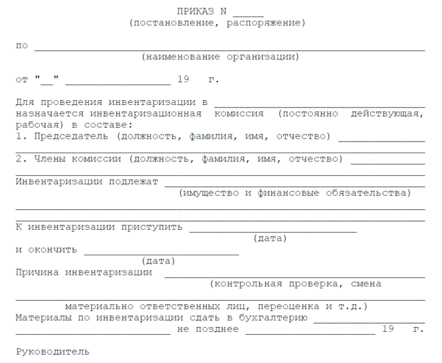 Когдавыбрали дату и тех, кто будет проверять, нужно составить приказ о проведении ревизии. В нем указано, когда, почему и кто проводит инвентаризацию в вашей компании и что будут пересчитывать. Это нужно, чтобы потом никто не сказал: «А ой, а я не в курсе, что я материально-ответственный, и вообще у моего ребенка утренник»