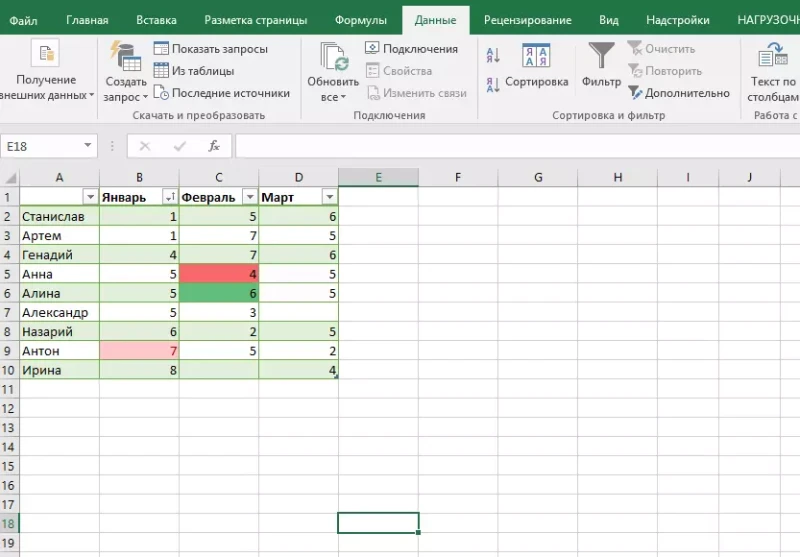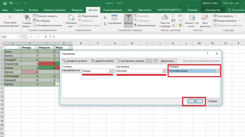 Рис. 5 – результат сортировки цифр в столбце «Январь»