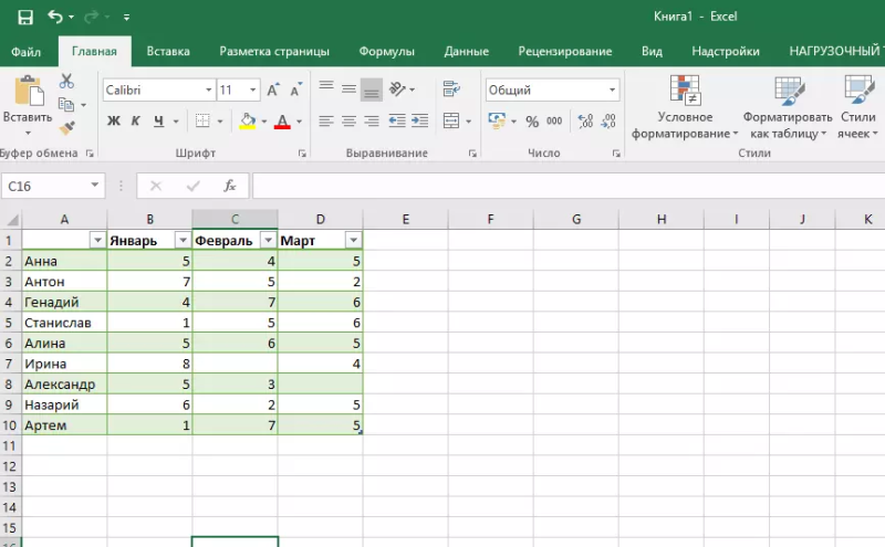 Перед вами уже заполненная таблица (как её создать разберемся дальше в статье). Представьте, что вам нужно отсортировать данные за январь по возрастанию.