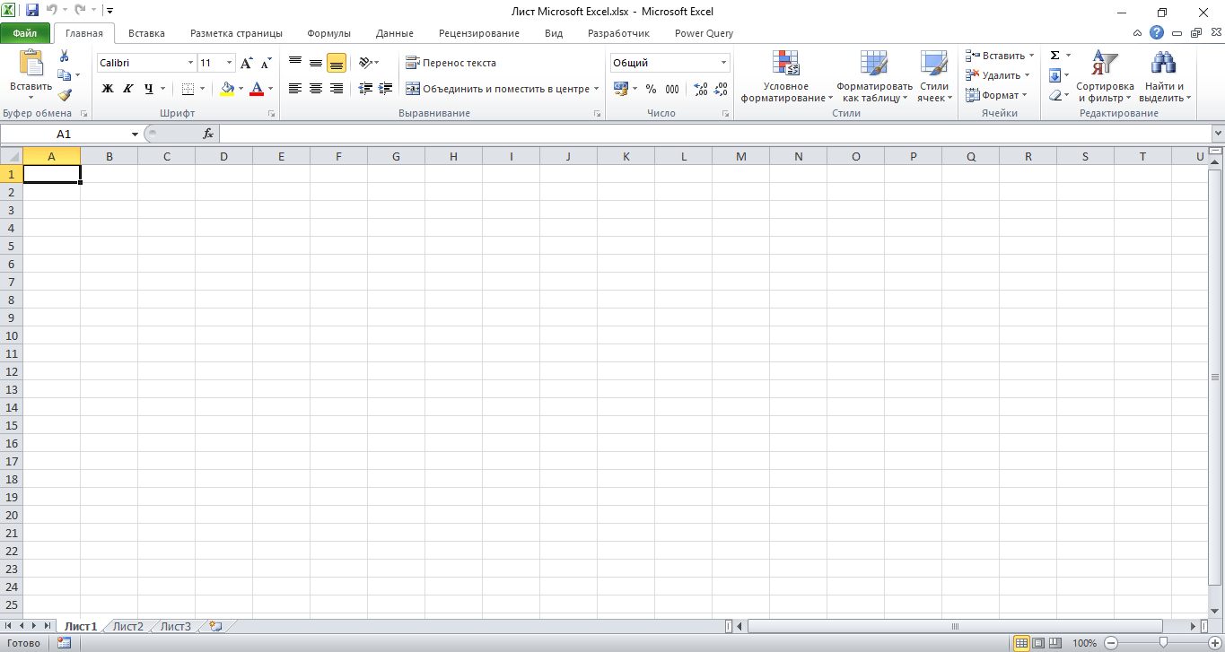 По умолчанию в каждой книге присутствует один лист (в ранних версиях — три листа). Количество листов, которые можно создавать в одной книге, ограничено только возможностями оперативной памяти компьютера. Поле Excel представляет собой таблицу из ячеек. Каждая ячейка имеет свой уникальный адрес, образованный пересечением строк и столбцов. Всего в Excel 1 048 576 строк и 16 384 столбца, что дает 2 147 483 648 ячеек. Над полем с ячейками находится строка функций, в которой отображаются данные, внесенные в ячейки или формулы. Также в программе есть несколько вкладок, которые мы разберем подробнее.