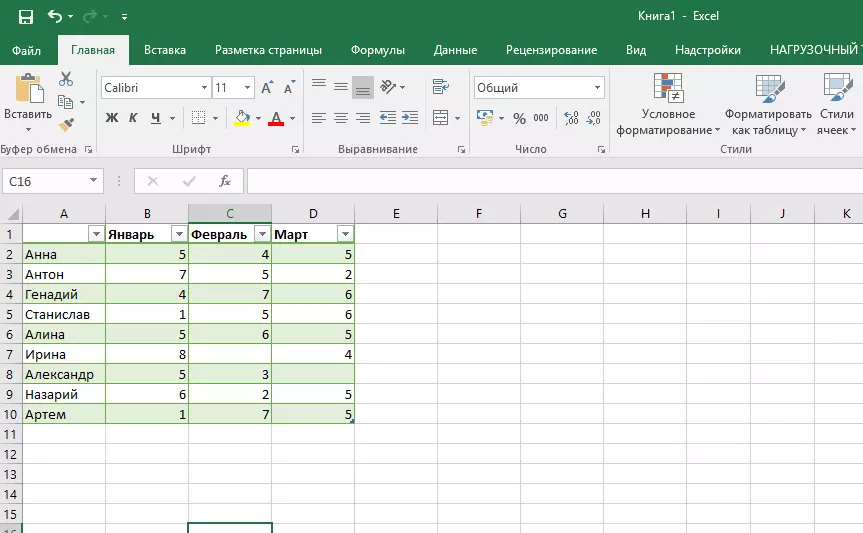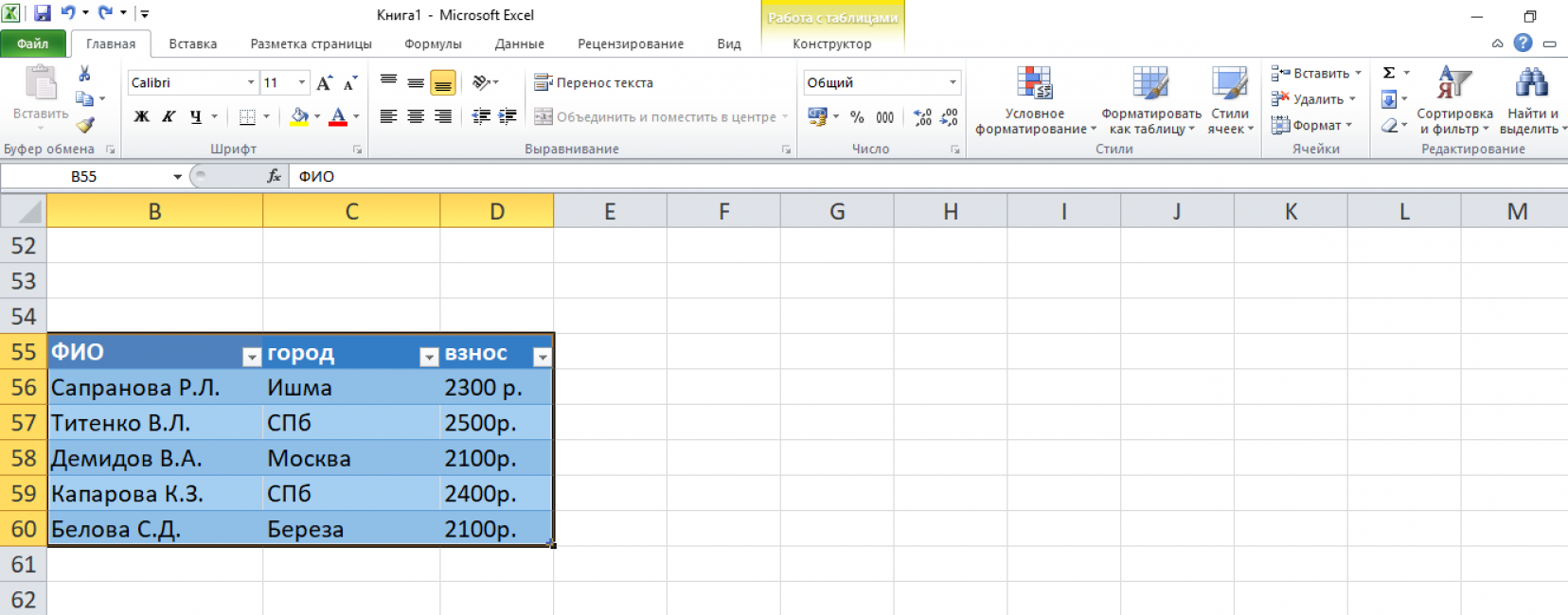 Рис. 5 – результат сортировки цифр в столбце «Январь»