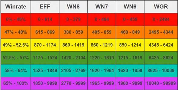 Чтобы узнать свой КПД в Ворлд оф Танкс по цвету, нужно посмотреть на это изображение: