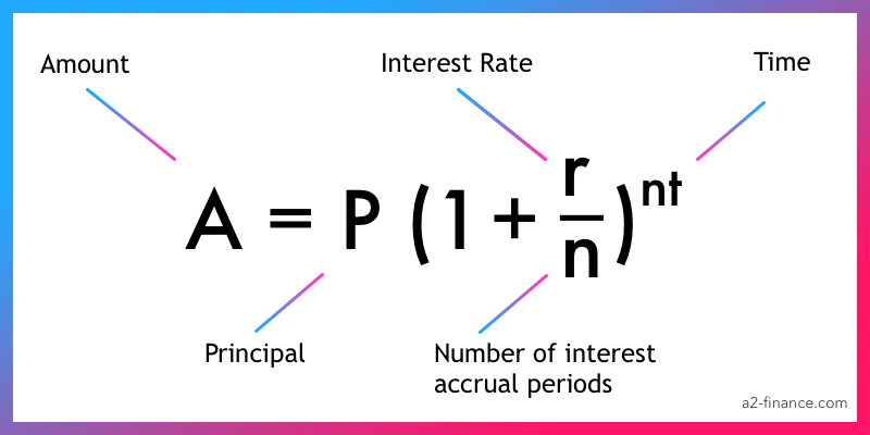 - Далее просто воспользуйтесь стандартной формулой, подставляя на место тех или иных переменных ваши данные. Собственно говоря, формула имеет следующий вид: A = P(1 + r/n)^(nt).