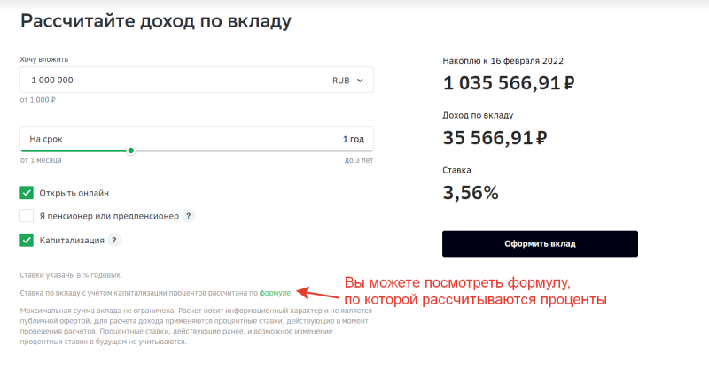 Стоит отметить преимущества СБЕРа, которое есть не у всех. Банк предлагает посмотреть формулу, по которой делается расчет.