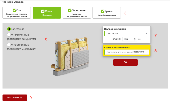 Рассчитаем утепление минватой с помощью калькулятора ИЗОВЕР