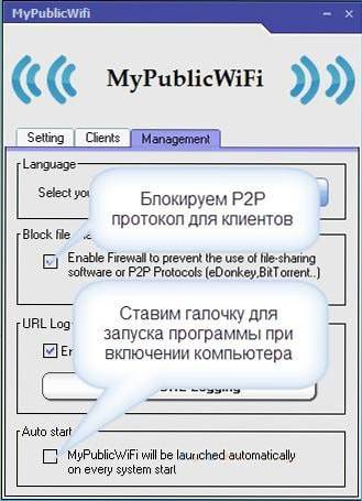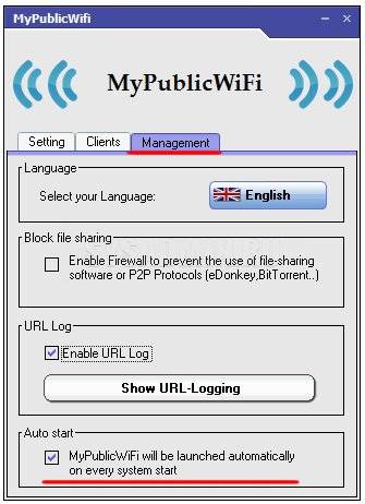 Тут можете включить автозагрузку, при каждом включении ПК, поставив флажок напротив «MyPublicWifi Will be launched on every system start». Это будет по удобнее, чем способ с ручной установкой сети.