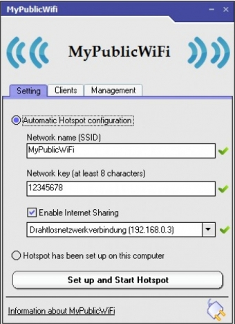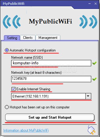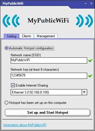 Раздаем Wi-Fi через утилиту My Public Wifi
