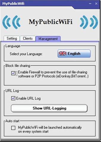 На вкладке «Management» можно выбрать язык, включить автоматический запуск программы при старте Windows и активировать firewall (позволяет ограничить доступ к определённым файлам и сайтам).