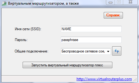 Просто введите нужные имя сети и пароль, а в поле «Общее подключение» выберите интерфейс, через который ноутбук подключен к Интернет. Далее нажмите кнопку «Запустить виртуальный маршрутизатор плюс», и появится новая точка доступа, к которой можно подключаться.