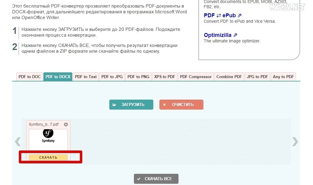 Кликаем Скачать, чтобы загрузить уже новый PDF-файл: