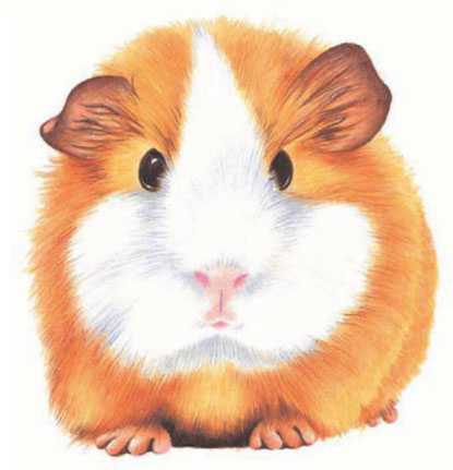 Эта пушистая небольшая морская свинка очень приятная и любопытная. Чтобы достигнуть мягкого эффекта ее меха, необходимо хранить карандаш всегда остро заточенным и работать по росту волос.