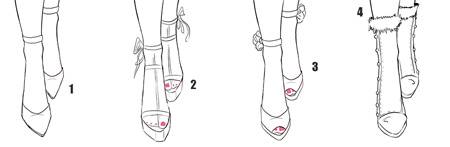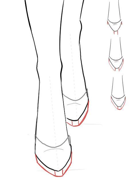 Стопы выглядят по-разному в зависимости от высоты каблука, однако в фэшн-иллюстрации редко рисуют голые ноги. Даже в сандалиях, стопы не до конца открыты и рисуются вместе с подошвой. Ниже показано как рисовать стопы при различной высоте каблука.