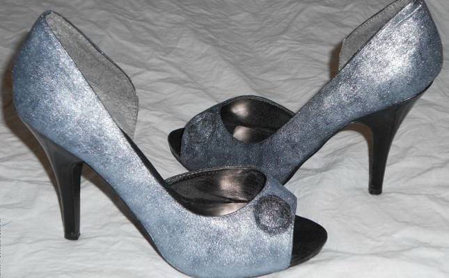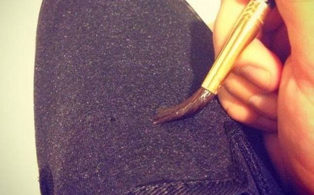 Затем возьмите шлифовальную шкурку с мелким напылением и аккуратно, чтобы не повредить краску, обработайте всю поверхность обуви.