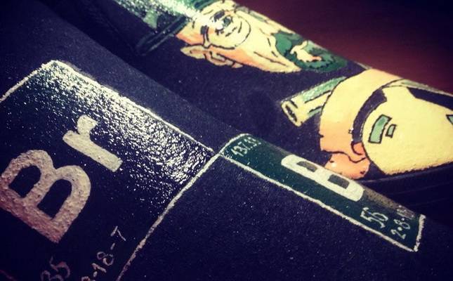 Когда рисунок уже есть на двух туфельках, можно приступить к росписи обуви акрилом, при этом важно придерживаться одного правила: красить нужно два элемента одновременно