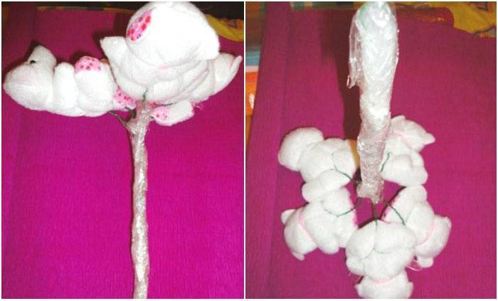 - Ножкой в букетно-игрушечной композиции может вступить все, что хорошо держит цилиндрическую форму: карандаш, ручка, трубочка для напитков (если букет маленький) и т.п. – включайте «соображалку» и свои «очумелые ручки».