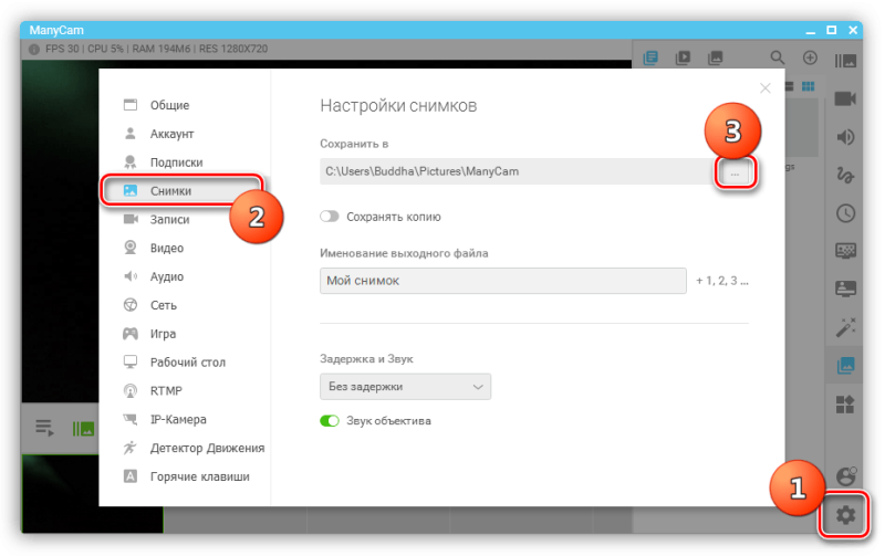 ManyCam представляет собой программу, способную расширить возможности вашей «вебки» путем добавления эффектов, текстов, рисунков и других элементов на экран. При этом собеседник или зритель также сможет их видеть. Кроме того, софт позволяет транслировать изображение и звук, добавлять в рабочее пространство несколько камер и даже ролики с YouTube. Нас же, в контексте данной статьи, интересует только то, как «сфоткаться» с ее помощью, что достаточно просто.