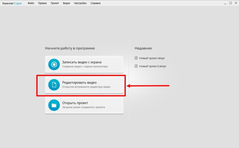 Для начала работы следует выбрать первую кнопку, позволяющую создать новый проект.