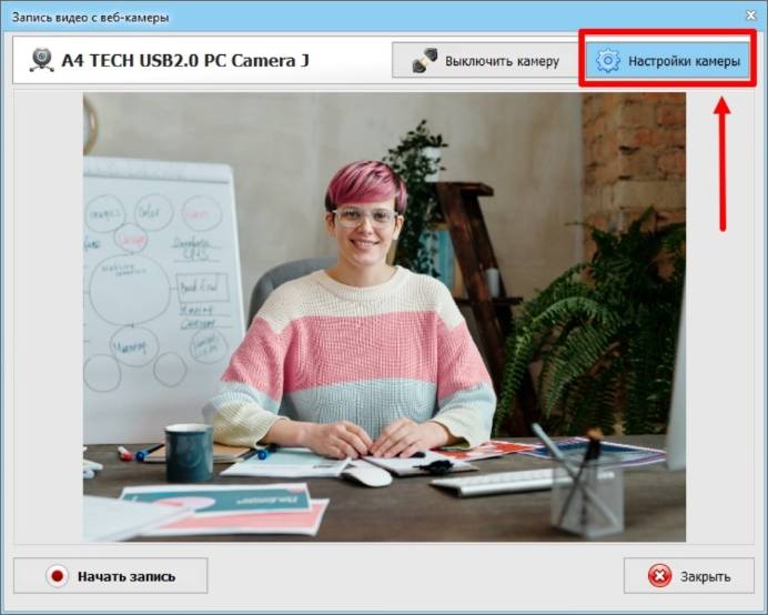 Перед началом записи посмотрите, устраивает ли вас картинка, нужно ли поменять что-то на заднем фоне или улучшить угол обзора и расположение веб-камеры. Дополнительные параметры посмотрите в «Настройках камеры».