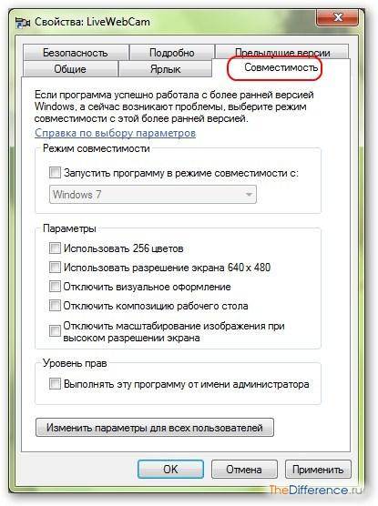 Отметьте галочкой пункт «Запустить программу в режиме совместимости» и в выпадающем списке укажите «Windows 98\ME». Сохраните настройки и перезапустите приложение LiveWebCam.