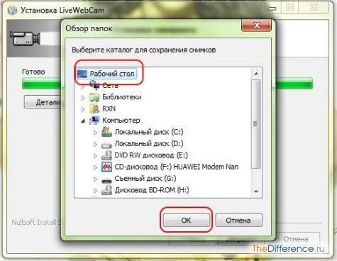Во время установки LiveWebCam откроется окошко с выбором места сохранения снимков. Выберите любое удобное для вас место и кликните «ОК».