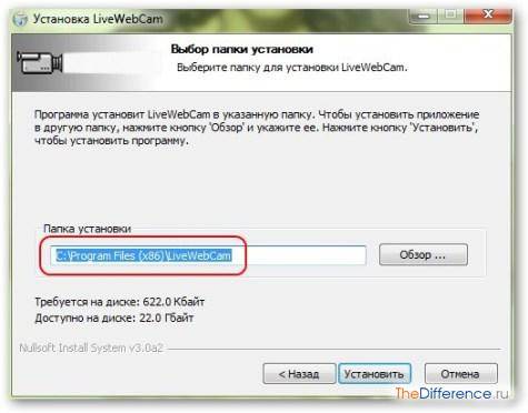 Укажите директорию для установки приложения либо оставьте по умолчанию C:\Program Files (x86)\ LiveWebCam. Нажмите кнопку «Установить» и дождитесь окончания процесса инсталляции.