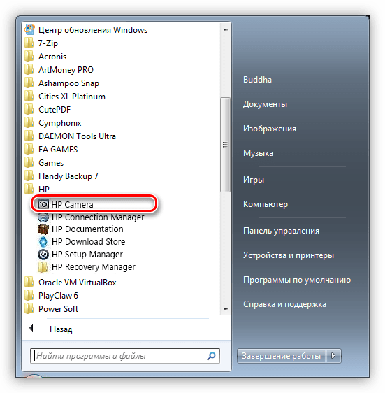 Большинство производителей ноутбуков вместе с устройством поставляют фирменное ПО для управления веб-камерой. Рассмотрим пример с программой от HP. Найти ее можно в списке «Все программы» или на рабочем столе (ярлык).