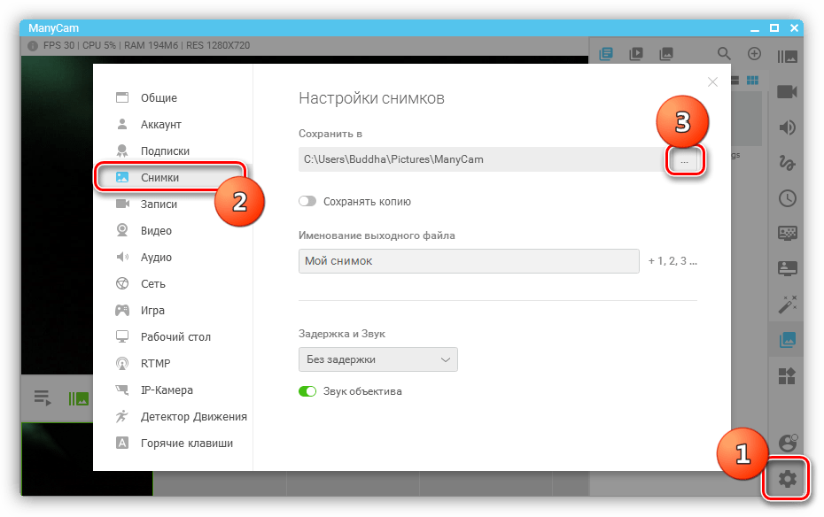 ManyCam представляет собой программу, способную расширить возможности вашей «вебки» путем добавления эффектов, текстов, рисунков и других элементов на экран. При этом собеседник или зритель также сможет их видеть. Кроме того, софт позволяет транслировать изображение и звук, добавлять в рабочее пространство несколько камер и даже ролики с YouTube. Нас же, в контексте данной статьи, интересует только то, как «сфоткаться» с ее помощью, что достаточно просто.