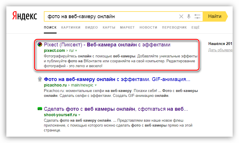 Мы здесь не будем рассматривать какой-то конкретный ресурс, коих в сети довольно много. Достаточно набрать в поисковике запрос вида «фото на веб-камеру онлайн» и перейти по любой ссылке (можно по первой, мы так и сделаем).