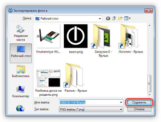 Далее можно сохранить снятое на компьютер, выбрав нужные фотки в нижней части приложения. Для этого нажимайте кнопку Сохранить. Если по каким-то причинам фото получились плохого качества, удалите их, нажав на крестик возле снимка