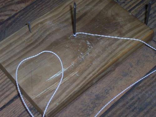 Нити с правой стороны нужно с натяжением протянуть к находящемуся слева гвоздю. А затем можно начать изготавливать непосредственно шиньон. Своими руками его сделать несколько сложно, всему можно научиться. Этапы работы выглядят таким образом: