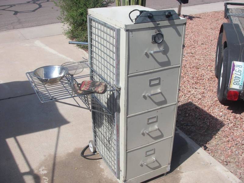 Также с успехом используется коптильня холодного копчения своими руками, сделанная из корпуса холодильника. Из него необходимо изъять морозильную камеру и компрессор. Решетки можно использовать как подставку для деликатесов. По бокам нужно сделать отверстия для противней.