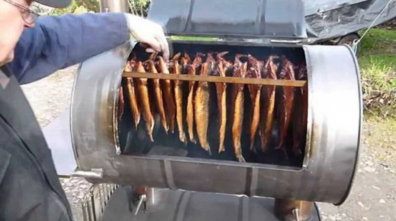 Аналогичным образом можно использовать вместо корпуса холодильника металлическую бочку. Правда, для переоборудования её в полноценную коптильню придётся приложить больше сил. Так, внутри потребуется поместить перекладины с крючками для подвешивания коптимых продуктов. Сверху сделать отверстие, плотно закрываемое крышкой. Подвод дыма осуществляется через нижнюю часть, а дымоотведение сквозь мелкие отверстия в крышке, или вставленную в неё трубу.